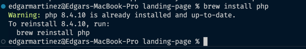 First, I need to install Homebrew but I already have it installed so next I need to install PHP with the following command: