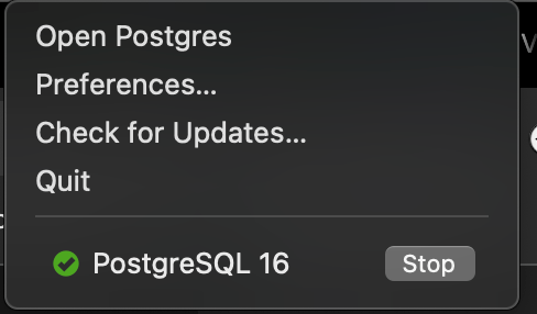 Next step is to install postgres, I already have it installed by Postgres App for MAC, reference: https://postgresapp.com/