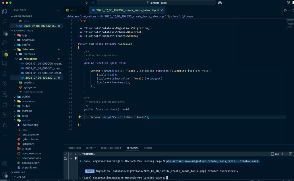 php artisan make:migration create_leads_table --create=leads