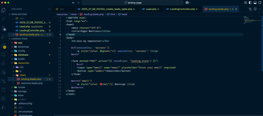 BUILDING A SIMPLE LANDING PAGE THAT SAVES EMAILS INTO A DATABASE USING LARAVEL AND RENDER