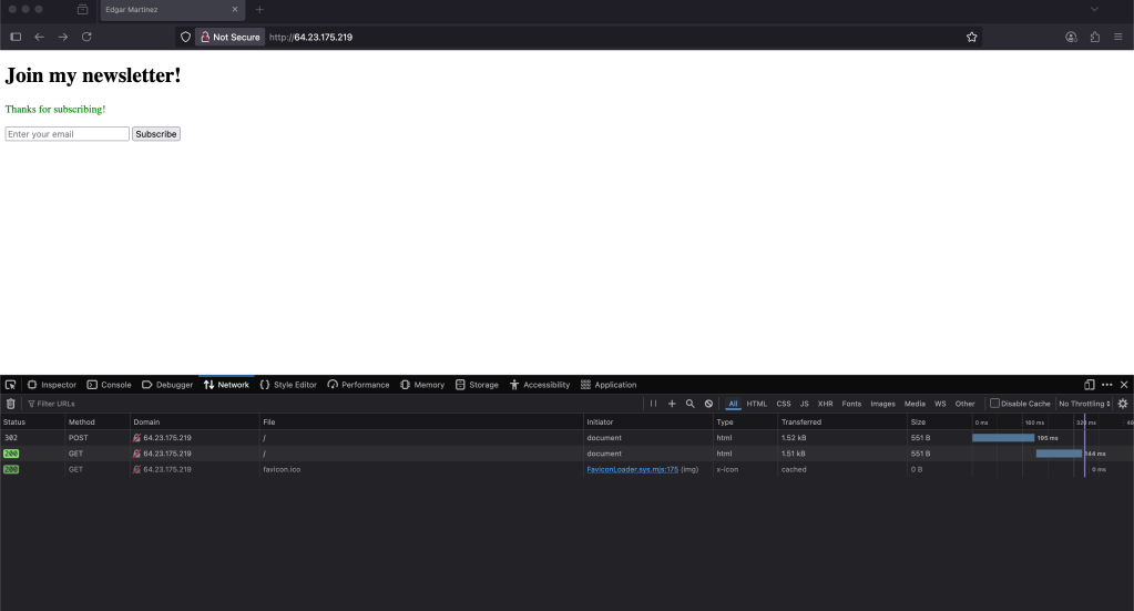 I don’t have an available domain this time so using HTTPS will be a subject for the future but in the mean time we can verify that the project is working on DigitalOcean:
