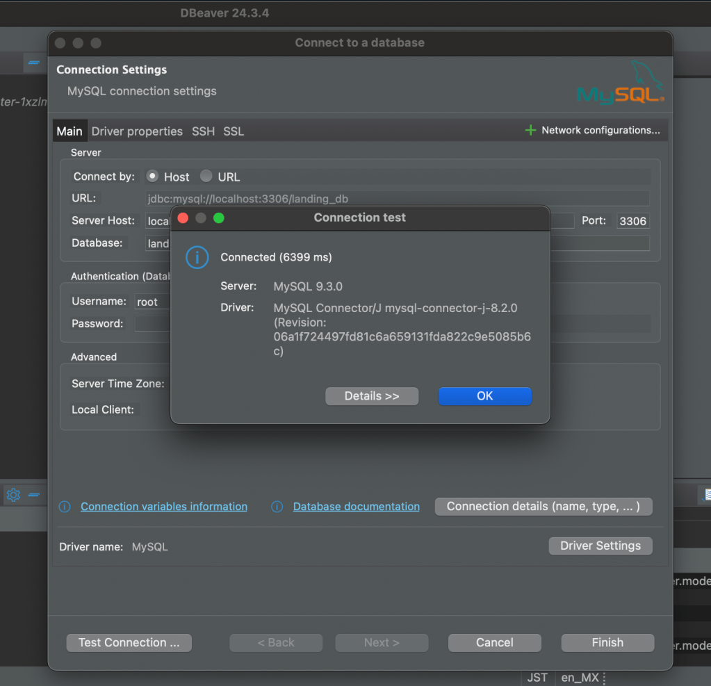 無事に作成できたら、あとはお気に入りの GUI を使ってデータベースを操作できます。今回は DBeaver を使う予定です。接続は問題なく成功しました。